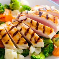oignons, tomate fraîche, poulet kebab, sauce blanche